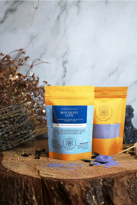 Deze fluweelzachte blauwe latte van Ayamani Naturals combineert zorgvuldig geselecteerde planten met een natuurlijke, subtiele zoetheid. Ideaal voor avondrituelen, zelfzorgmomenten en een rustig zenuwstelsel doorheen de dag.