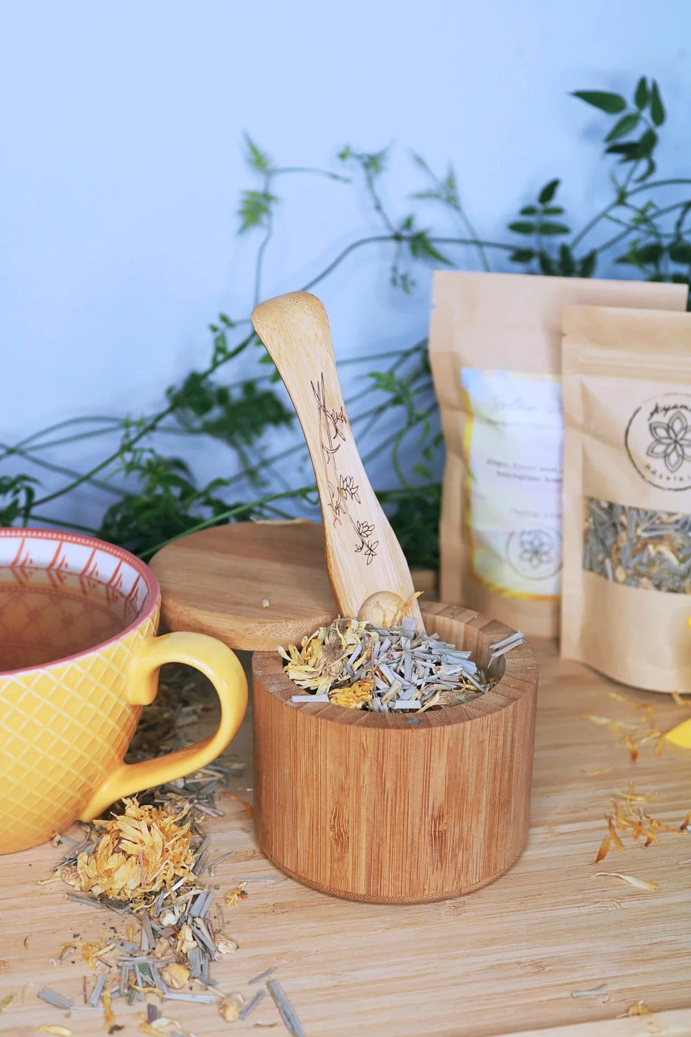 Thee bereiden en drinken nodigt uit tot vertraging. Een moment om te landen, te voelen en te herstellen. In deze collectie vind je zorgvuldig samengestelde theeblends van kruiden, bloemen en wortels die lichaam en geest ondersteunen. Elke melange is samengesteld met aandacht voor darmgezondheid, ontspanning en natuurlijke energie.